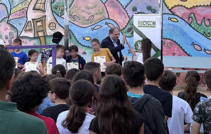 Παράλληλα έγινε ολοήμερη δράση με παιχνίδια που οργανώθηκαν ανά τάξη σε συνεργασία με την εταιρεία Recycom, με την οποία πραγματοποιείται στον Δήμο ανακύκλωση ρούχων, αξεσουάρ και υπόδησης με 70 μωβ κάδους σε όλο τον Βύρωνα.