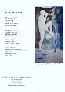 Η Γκαλερί Μπαταγιάννη παρουσιάζει την ενδέκατη ατομική έκθεση της Ελεάννας Μαρτίνου υπό τον τίτλο Μαρμαρυγή, σε επιμέλεια της ιστορικού τέχνης Νίκης Παπασπύρου. Στην έκθεση θα παρουσιαστούν έργα ζωγραφικά, κυανοτυπίες και ανάγλυφα γλυπτά σε μικρό μέγεθος που ανήκουν στην τελευταία ομώνυμη ενότητα δουλειάς της καλλιτέχνιδας. Η έκθεση εγκαινιάζεται το Σάββατο 25 Μαΐου 2024, 11:00 – 15:00 και θα διαρκέσει έως το Σάββατο 29 Ιουνίου, 2024.