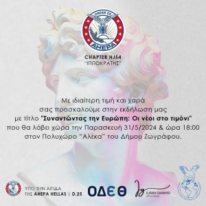“Συναντώντας την Ευρώπη: Οι νέοι στο τιμόνι” είναι ο τίτλος της εκδήλωσης που διοργανώνει ο φορέας American Hellenic Educational Progressive Association, την Παρασκευή 31 Μαΐου, στον Πολυχώρο ΑΛΕΚΑ του Δήμου Ζωγράφου.