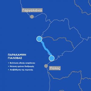 Ειδικότερα, το έργο θα εκτελεστεί στον Δήμο Πύλου – Νέστορος και περιλαμβάνει τη βελτίωση τμήματος μήκους 3,5 χλμ. της υφιστάμενης 9ης Εθνικής Οδού και την κατασκευή νέου τμήματος μήκους 4,2 χλμ. για την παράκαμψη του οικισμού της Γιάλοβας. Το έργο, που θα έχει διάρκεια κατασκευής 24 μήνες, θα μειώσει τους χρόνους της διαδρομής και θα αυξήσει τα επίπεδα οδικής ασφάλειας. Στο πλαίσιο της εργολαβίας, θα κατασκευαστούν σημαντικά συνοδά έργα, όπως ισόπεδοι κυκλικοί κόμβοι, cut & cover, τεχνικά έργα γεφύρωσης ρεμάτων, διαβάσεις, ηλεκτροφωτισμός, κ.α.