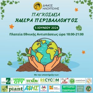 Ο Δήμος Ηλιούπολης, με αφορμή την Παγκόσμια Ημέρα Περιβάλλοντος την Τετάρτη 5 Ιουνίου 2024, διοργανώνει από τις 18:00 έως τις 21:00 στην Κεντρική Πλατεία Ηλιούπολης(Πλατεία Εθνικής Αντιστάσεως) μία εκδήλωση ευαισθητοποίησης για την προστασία του Περιβάλλοντος και την ενίσχυση των αρχών της αειφορίας και της βιώσιμης Ανάπτυξης.