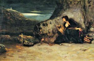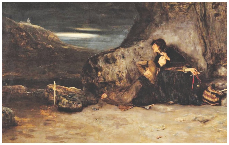 Ο πίνακας «Το Τάμα» (εικ.2), φιλοτεχνείται από τον Γύζη το 1886, και βρίσκεται στην Εθνική Πινακοθήκη. Απεικονίζει μια μητέρα και την κόρη της να βρίσκονται σε ένα απόκρημνο βραχώδες τοπίο. Είναι μαυροντυμένες και οδεύουν προς ένα μικρό ξωκκλήσι για να εκπληρώσουν ένα τάμα. Η κόρη κρατά στα χέρια της μια αλυσίδα με κόκκινη καρδιά, η οποία υπονοεί πως το τάμα αφορά τον χαμένο της αρραβωνιαστικό. Η θλίψη της κοπέλας είναι ξεκάθαρη, ενώ όλο το έργο είναι σκοτεινό, με το πρόσωπό της να λειτουργεί ως αυτόφωτη πηγή. Οι δύο γυναίκες περπατούν ξυπόλητες στο δύσβατο αυτό μέρος, ενώ η μητέρα, κρατώντας αγκαλιά την αγαπημένη της κόρη, ακουμπά στο βράχο και φυλλομετρεί την απόσταση που τις χωρίζει από το μικρό εκκλησάκι και την εκπλήρωση του τάματος.
