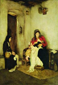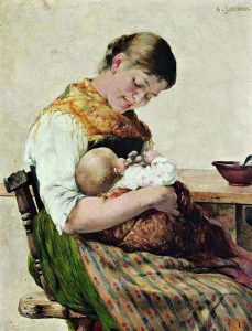 Ο Νικόλαος Γύζης (1842 – 1901), ένας από τους επιφανέστερους Έλληνες ζωγράφους του 19ου αιώνα της λεγόμενης «Σχολής του Μονάχου», ζωγραφίζει το 1875 ένα από τα εμβληματικότερα έργα του με τίτλο «Η ψυχομάνα» (εικ.1). Μέσα σε ένα απλό σπίτι, με την εικόνα της Παναγιάς στον τοίχο, κάθεται μια καλοσυνάτη νέα γυναίκα και θηλάζει ένα ορφανό παιδί, ενώ το δικό της έχει ανέβει σε ένα καρεκλάκι και επιχειρεί να την αγκαλιάσει διεκδικώντας το ενδιαφέρον της. Το βλέμμα της είναι στραμμένο στοργικά προς το παιδί που θηλάζει και το πρόσωπό της ήρεμο αποπνέει προσωπική ευτυχία και ικανοποίηση που πηγάζει από την ανιδιοτελή προσφορά της. Η κόκκινη ζακέτα της δίνει αισιοδοξία μέσα στην όλη τραγικότητα και σκοτεινή εικόνα της ζωής. Στο αριστερό τμήμα της εικόνας κάθεται παράμερα στην πόρτα μαυροφορεμένη η δυστυχισμένη μεγάλη ορφανή αδελφή και κρατάει το σκουφάκι του μωρού, με λυπημένο ύφος για την απώλεια της δικής της μητέρας. Στον αριστουργηματικό αυτόν πίνακα η δυστυχία και η ευτυχία μοιράζονται ανάλογα, συνυπάρχουν δραματικά.