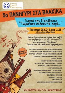 Αύριο, Παρασκευή 28 Ιουνίου, στον περίβολο του Ι.Ν. Αγίων Αποστόλων στο Δίλοφο της Βάρης, στις 9.15μμ, θα πραγματοποιηθεί το 5o Πανηγύρι στα Βλάχικα – Γιορτή της Παράδοσης “Τώρα που στήσαν το χορό.…”.