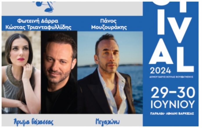 Στο φεστιβάλ με τίτλο “Μια θάλασσα τραγούδια” που θα πραγματοποιηθεί το Σάββατο 29 και την Κυριακή 30 Ιουνίου συμμετέχουν οι Φωτεινή Δάρρα, Κώστας Τριανταφυλλίδης και Πάνος Μουζουράκης.