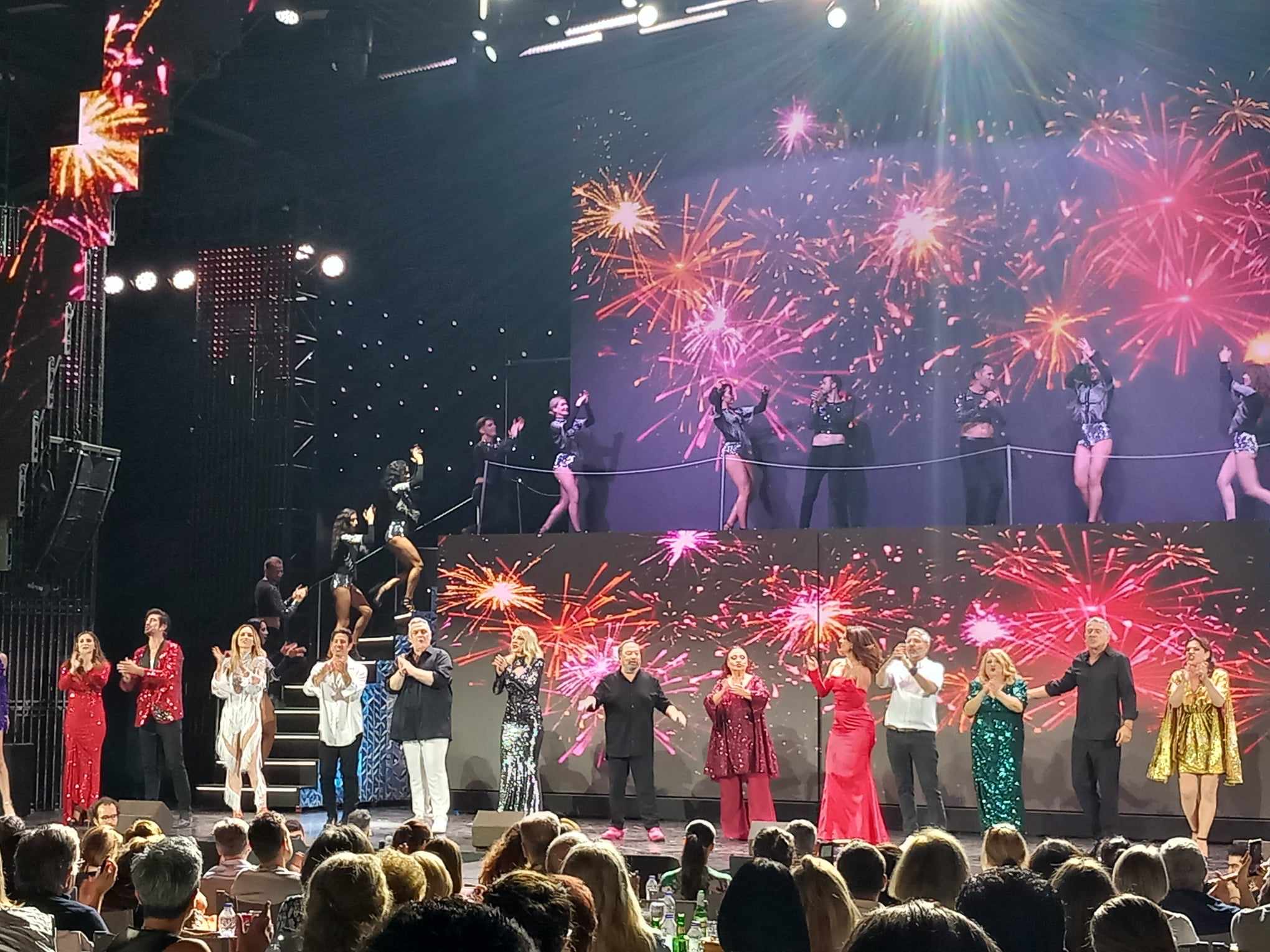 -Όλο τον θίασο να παρελαύνει επί σκηνής με τον κάθε ηθοποιό να «ντύνεται» και από έναν ρόλο από παλαιότερες τηλεοπτικές σειρές που έγραψαν ιστορία («Μαντάμ Σουσού», Κατακουζηνός από το «Κωνσταντίνου και Ελένης», «Λενιώ» από τις «Άγριες Μέλισσες», πατήρ Ιωάννης από το «Άγγιγμα ψυχής»).