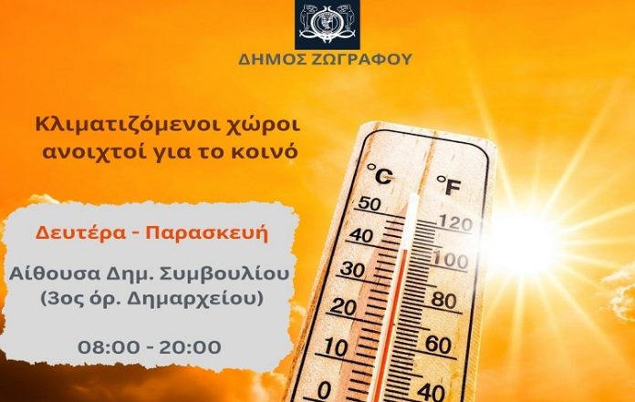 Μέχρι και αύριο, Παρασκευή, θα είναι ανοικτός και διαθέσιμος να υποδεχθεί πολίτες, ο κλιματιζόμενος χώρος του Δήμου Ζωγράφου.
