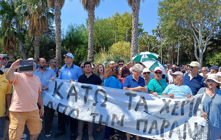 οι παρατάξεις της αντιπολίτευσης και οι κάτοικοι του Λαγονησίου, έκαναν πορεία διαμαρτυρίας για τα σχέδια της ΕΤΑΔ στην παραλία «Πεύκο», δίπλα στο Grand Resort. Στο πλάι τους, ο δήμαρχος Αλίμου, Ανδρέας Κονδύλης, ο οποίος έχει ανοιχτές δικαστικές υποθέσεις με την ΕΤΑΔ για τον τρόπο εκμετάλλευσης του παραλιακού κομματιού της πόλη του από επιχειρηματίες.