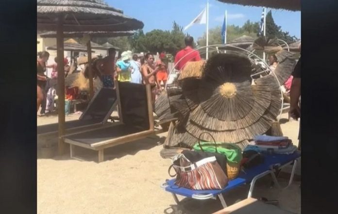 Ένας μικρός ανεμοστρόβιλος ξήλωσε ομπρέλες και ξαπλώστρες προκαλώντας αναστάτωση σε μικρούς και μεγάλους.