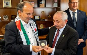 Τον δήμαρχο της Νάμπλους συνόδευε ο πρέσβης της Παλαιστινιακής Αρχής στην Ελλάδα Yussef Dorkhom, με τον οποίο ο Γ. Κουτελάκης έχει ήδη από τον περασμένο Μάιο σφυρηλατήσει στενές φιλικές σχέσεις.