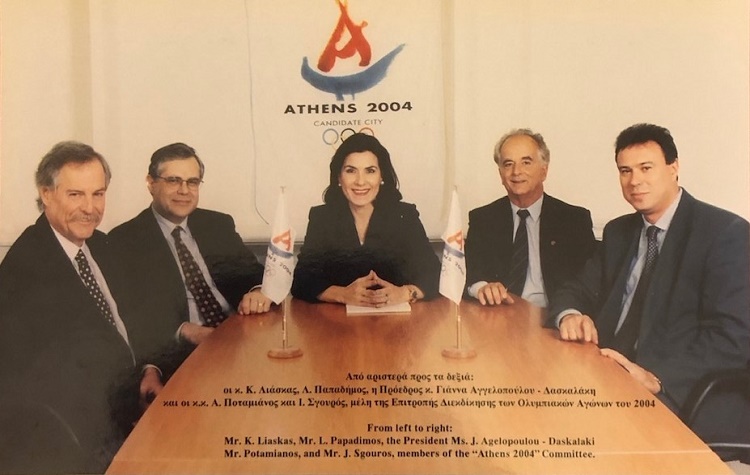 Πρόεδρος ήταν η κ. Γιάννα Αγγελοπούλου – Δασκαλάκη, που από την πρώτη στιγμή πίστεψε στην επιτυχία και κατάφερε να πείσει αρκετούς από τη διεθνή κοινότητα χάρη στο κύρος και τις επαφές της. Μαζί της σε αυτή την μεγάλη πορεία προς τη νίκη ήμασταν οι Κώστας Λιάσκας, Ανδρέας Ποταμιάνος, Λουκάς Παπαδήμος και εγώ. Η παρουσία μου ως Γ.Γ.Α και η εμπειρία μου ως αθλητικού παράγοντα στην Παγκόσμια και Ελληνική Ομοσπονδία της άρσης βαρών, όπου και καταφέραμε να δημιουργήσουμε την dream team του αθλήματος σε ευρωπαϊκό και παγκόσμιο επίπεδο, θέλω να πιστεύω πως βοήθησαν την επιτροπή διεκδίκησης να πετύχει στο έργο της.
