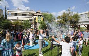 Το ατελείωτο παιχνίδι, σε κάθε γωνιά της παιδικής χαράς, δείχνουν πόσο πολύ την αγκάλιασε η τοπική κοινωνία, συμμετέχοντας στο πάρτι που διοργανώθηκε, με μουσική, facepainting, φούσκες και ξυλοπόδαρους.