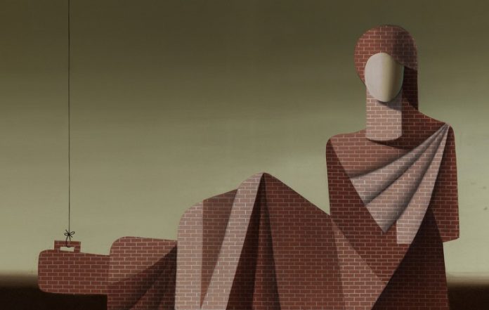 από τούβλα ή ντυμένες με κτιστούς πτυχωτούς μανδύες, που περιφέρουν τη μοναξιά τους, γυρεύοντας μάταια να επικοινωνήσουν. Άλλοτε οι άνθρωποι είναι φτιαγμένοι από μηχανικά στοιχεία, με μηχανικό κεφάλι ή χωρίς κεφάλι, κριτική μιας καθαρά μηχανοκρατούμενης περιόδου, που ὁ άνθρωπος παραμερίζεται από τη μηχανή.