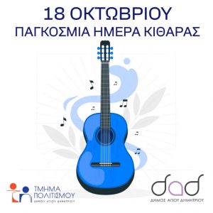 “Το Σάββατο στις 18 Οκτωβρίου και ώρα 12.00 το μεσημέρι στην μεγάλη αίθουσα του Δημοτικού Ωδείου, θα γίνει μια μικρή συναυλία και ομιλία για την Παγκόσμια Ημέρα Κιθάρας, που θα συμμετέχουν καθηγητές καθώς και μαθητές του Ωδείου Αγίου Δημητρίου. Θα προλογίσει ο Καλλιτεχνικός Διευθυντής Δημήτρης Παπαθεοδώρου και βασικός ομιλητής θα είναι ο έφορος κιθάρας του Ωδείου, Βασίλης Μαστοράκης”, αναφέρεται σε ανακοίνωση του Δήμου.