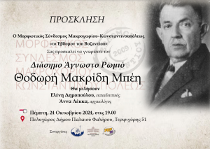 Ο Δήμαρχος Παλαιού Φαλήρου Γιάννης Φωστηρόπουλος και ο Μορφωτικός Σύνδεσμος Μακροχωρίου – Κωνσταντινουπόλεως «το Έβδομον του Βυζαντίου» προσκαλούν κάθε ενδιαφερόμενο να γνωρίσει τον διάσημο Άγνωστο Ρωμιό Αρχαιολόγο, Θοδωρή Μακρίδη Μπέη. Ηταν μέλος της ακμάζουσας ρωμέικης κοινότητας σε ένα από τα πιο γνωστά προάστια της Κωνσταντινούπολης, στις αρχές του 20ου αιώνα, το οποίο μετά την πτώση της Βυζαντινής Αυτοκρατορίας ονομαζόταν “Μακρόν Χωρίον” ή Μακροχώρι.