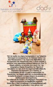 Η συγγραφέας θα παρουσιάσει επίσης τις περιπέτειες του βιβλίου της και σε κουκλοθέατρο, ενώ τα παιδιά θα πάρουν μέρος και σε άλλες μουσικές και παιδαγωγικές δραστηριότητες. Χαιρετισμό εκ μέρους του Δήμου θα απευθύνει η αντιδήμαρχος πολιτισμού Αγγελική Σαραβελάκη.