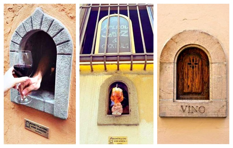Αιώνες αργότερα, καθώς ο κόσµος βρισκόταν αντιµέτωπος µε την Κορώνα, οι φλωρεντινοί βρήκαν νέα χρήση για τα ιστορικά παράθυρα κρασιού. Τα άνοιξαν ξανά και τα χρησιµοποίησαν για να σερβίρουν καφέ, κοκτέιλ και άλλα ποτά σε απόσταση ασφαλείας.