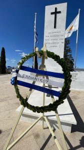 «Στον ιερό αυτό χώρο βρίσκονται θαμμένα πολλά παλληκάρια της Ελλάδας, αλλά και της Κύπρου που πιστά στο κάλεσμα της πατρίδας έπεσαν στην εισβολή του 1974. Στον Τύμβο βρίσκονται συγκεντρωμένα και άλλα μνήματα Ελλήνων αξιωματικών και οπλιτών, που έπεσαν σε προηγούμενους αγώνες της Κύπρου για ελευθερία, ενώ υπάρχουν πολλά κενοτάφια για τους αγνοούμενος που ακόμα αναζητούνται», σημείωσε ο κ. Κωνσταντάτος και πρόσθεσε: «Στη μνήμη των παλικαριών αυτών που έπεσαν για να υπερασπιστούν την ελευθερία, κατέθεσα στεφάνι στο Μνημείο. “Αιωνία τους η μνήμη”».