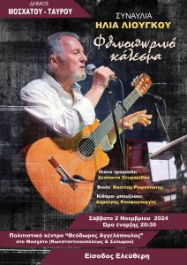 Ο Δήμος Μοσχάτου-Ταύρου καλεί όλους τους πολίτες του να απολαύσουν, με ελεύθερη είσοδο, τη συναυλία «Φθινοπωρινό κάλεσμα» του Ηλία Λιούγκου, το Σάββατο 2 Νοεμβρίου, στις 20.30 στο Πολιτιστικό Κέντρο «Θεόδωρος Αγγελόπουλος» στο Μοσχάτο (Κωνσταντινουπόλεως και Σολωμού).Ο Ηλίας Λιούγκος, με τη βαθιά του φωνή και την ιδιαίτερη μουσική του προσέγγιση, έχει κερδίσει επάξια μια σημαντική θέση στο ελληνικό μουσικό στερέωμα. Γνωστός για τις ερμηνείες του σε τραγούδια μεγάλων Ελλήνων συνθετών και την προσωπική του συνεισφορά στο έντεχνο τραγούδι, υπόσχεται να μας ταξιδέψει με μελωδίες που συγκινούν και εμπνέουν.
