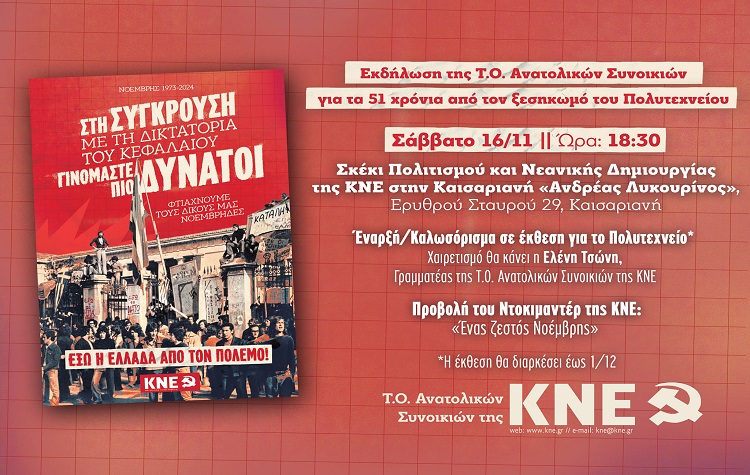 Θα ακολουθήσει προβολή του Ντοκιμαντέρ της ΚΝΕ «Ένας ζεστός Νοέμβρης».