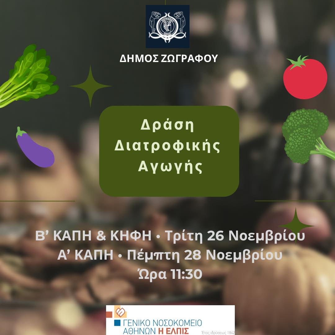 Η ανακοίνωση καταλήγει πως στόχος του Δήμου Ζωγράφου μέσα από αυτή τη συνεργασία με την εξειδικευμένη ομάδα του «ΕΛΠΙΣ» είναι η βελτίωση της ποιότητας ζωής των μελών των ΚΑΠΗ & ΚΗΦΗ και ο έλεγχος της χρόνιας νοσηρότητας που προκαλείται από τη διατροφή.