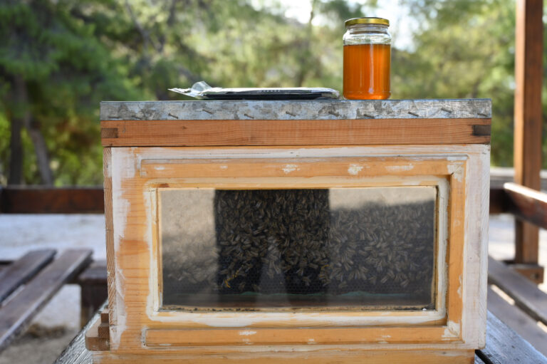 Οι συμμετέχοντες είχαν την ευκαιρία να ενημερωθούν για τον πολύτιμο ρόλο της μέλισσας από μελισσοκόμους της περιοχής, οι οποίο μάλιστα επιφύλασσαν μια έκπληξη προσφέροντας μέλι Υμηττού σε όλους τους εκπαιδευτικούς.
