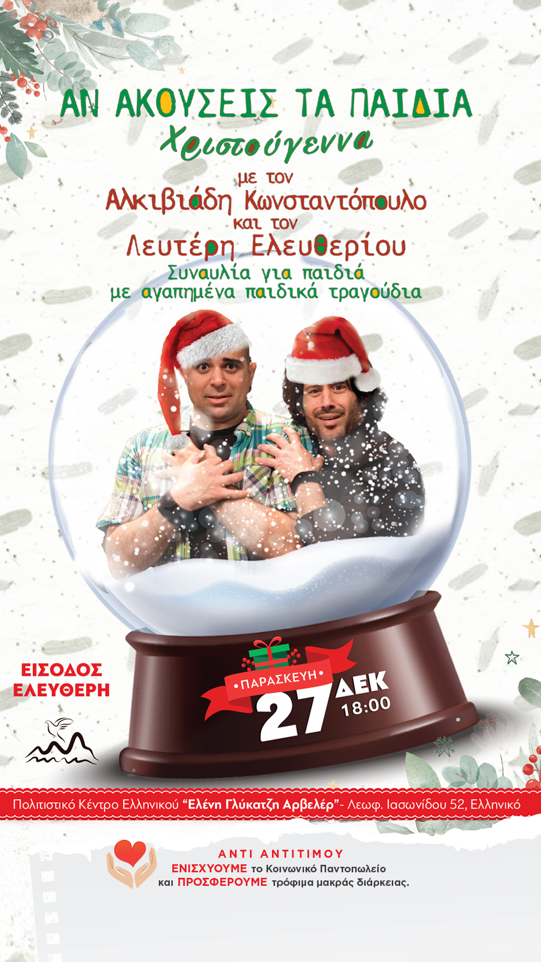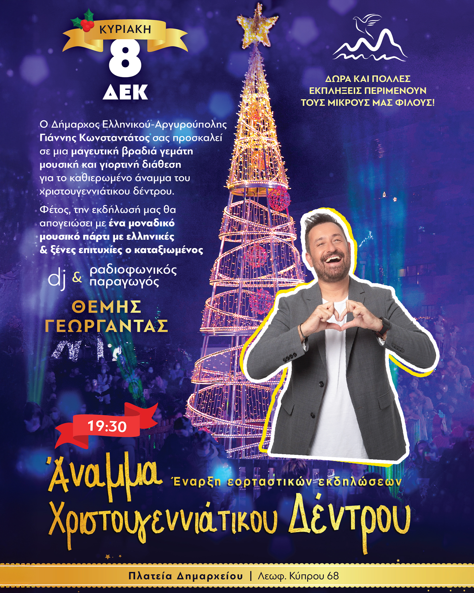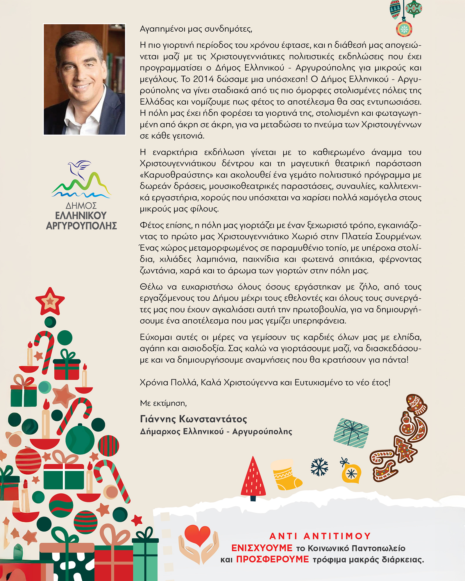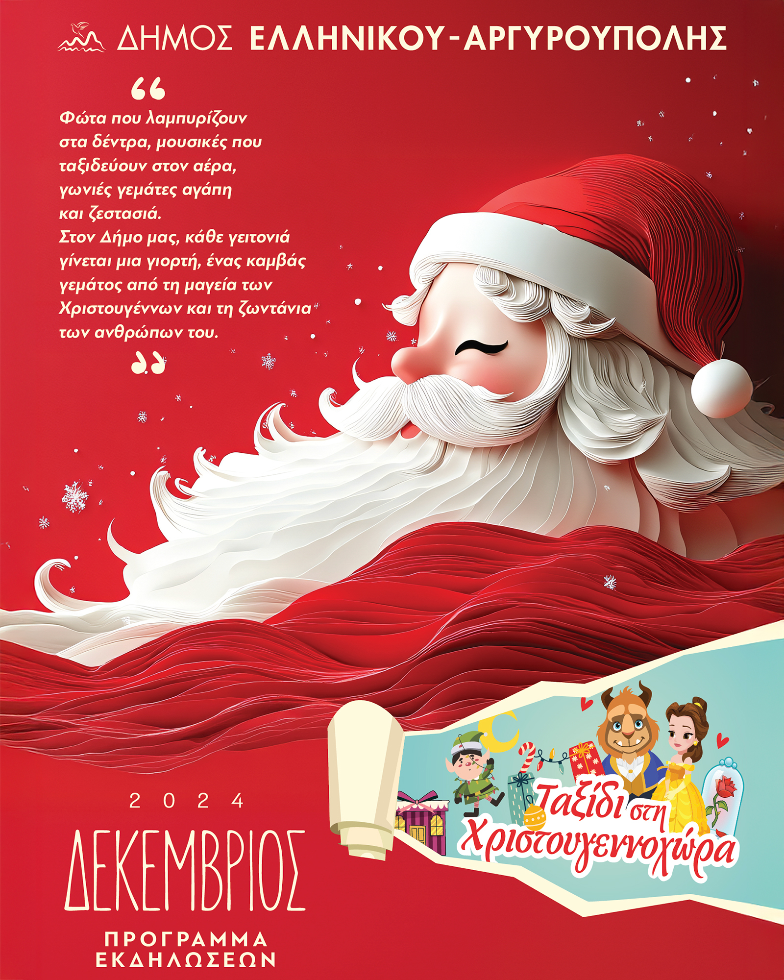 Η πιο μαγική εποχή του χρόνου έφτασε, και ο Δήμος Ελληνικού Αργυρούπολης προσκαλεί όλους τους Δημότες και τους κατοίκους του Δήμου αλλά και των γύρω περιοχών, να απολαύσουν μια σειρά μοναδικών χριστουγεννιάτικων εκδηλώσεων για όλη την οικογένεια!