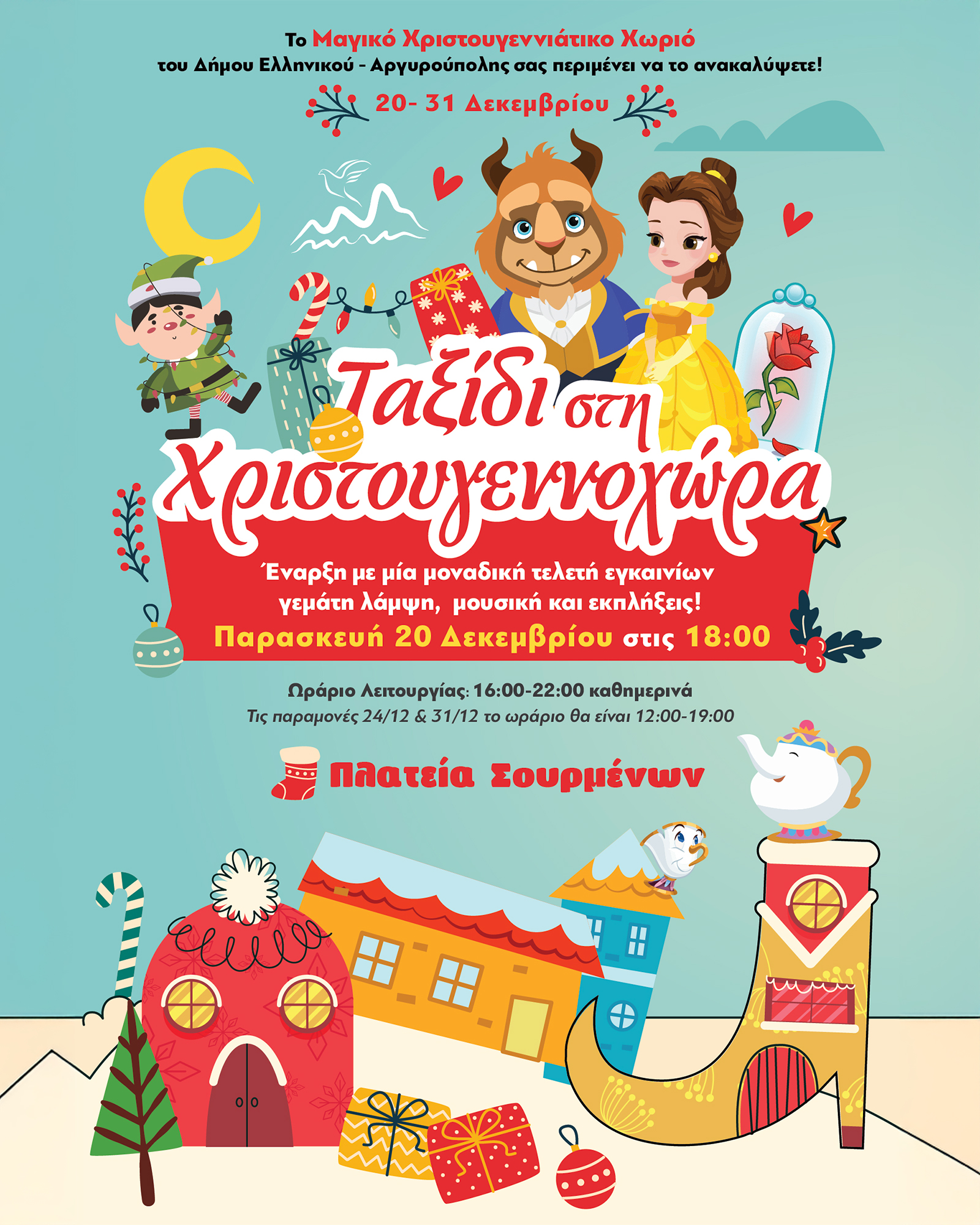 Φέτος, τα Χριστούγεννα αποκτούν μια νέα γιορτινή διάσταση στην πόλη και ταξιδεύουν στη «Χριστουγεννοχώρα», το πρώτο Χριστουγεννιάτικο Χωριό του Δήμου Ελληνικού Αργυρούπολης, έναν χώρο γεμάτο εκπλήξεις και χαρά για όλη την οικογένεια, στην Πλατεία Σουρμένων.