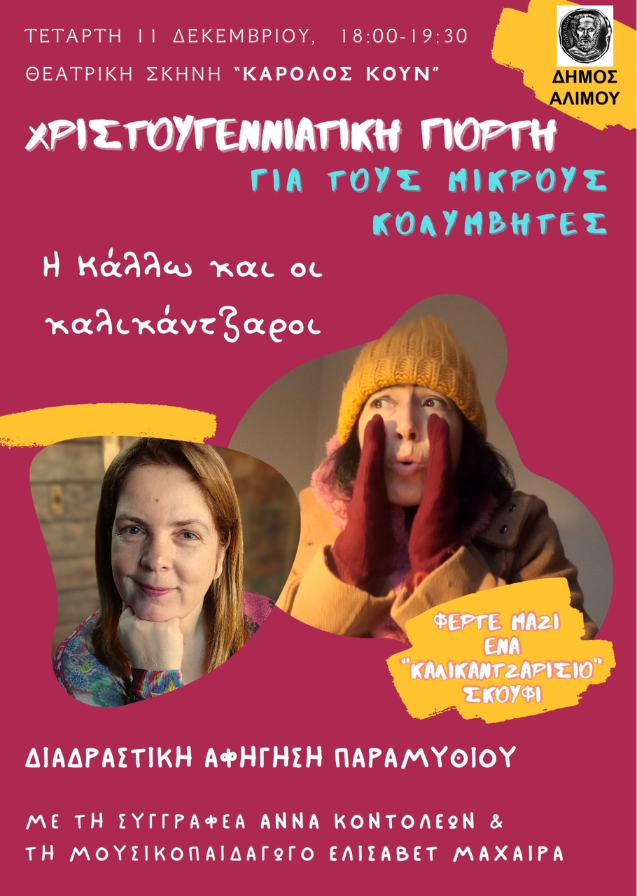 Το Δημοτικό Κολυμβητήριο Αλίμου διοργανώνει την Τετάρτη 11 Δεκεμβρίου την ετήσια Χριστουγεννιάτικη Γιορτή για τους μικρούς κολυμβητές του.Αξίζει να σημειωθεί πως για περισσότερη χαρά και ολόψυχη συμμετοχή, καλό θα ήταν τα παιδιά να έχουν μαζί τους ένα σκουφάκι καλικάντζαρου. Στη γιορτή μπορούν να συμμετέχουν, εντελώς δωρεάν, και παιδιά που δεν είναι εγγεγραμμένα στο κολυμβητήριο.