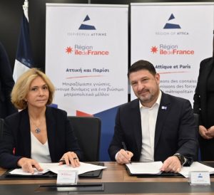 Λίγες ώρες πριν από την έναρξη του Athens Talks, η Πρόεδρος της Île de France και ο Περιφερειάρχης Αττικής Νίκος Χαρδαλιάς υπέγραψαν Πρωτόκολλο Συναντίληψης και Συνεργασίας μεταξύ των δύο μητροπολιτικών περιφερειών για την αντιμετώπιση της κλιματικής κρίσης.