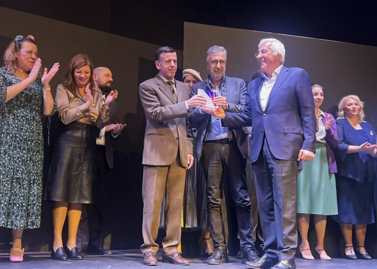 Ο Στέλιος Μαμαλάκης μαζί με τον κ. Μανόλη Καραμολέγκο (μεγάλο χορηγό εκδηλώσεων του Δήμου), τίμησαν την κ. Αγγέλα Καζακίδου, τη γυναίκα που οραματίστηκε και διαμόρφωσε τη θεατρική δράση στο Δήμο Αγίου Δημητρίου. Λόγω ασθένειας την τιμητική πλακέτα παρέλαβε για λογαριασμό της κας Καζακίδου, ο κ. Απόστολος Ξιαρχογιαννόπουλος, μέλος της θεατρικής ομάδας, ο οποίος ευχαρίστησε το Δήμο εκ μέρους της αλλά και για την στήριξη που παρείχε στην επιτυχημένη επανεκκίνηση της Δημοτική Θεατρικής Αγίου Δημητρίου, που είχε διακόψει τη δράση της από την περίοδο της πανδημίας του κορονοϊού.
