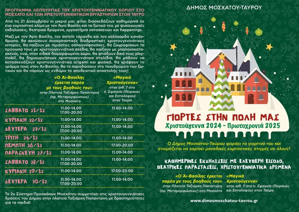 Τα φετινά Χριστούγεννα, Δήμος Μοσχάτου-Ταύρου γιορτάζει και καλεί τους πολίτες, μικρούς και μεγάλους, να συμμετέχουν στις δράσεις που έχει ετοιμάσει.