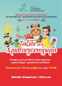αποκτούν μια νέα γιορτινή διάσταση στην πόλη και ταξιδεύουν, όσους την επισκεφθούν, στη «Χριστουγεννοχώρα», το πρώτο Χριστουγεννιάτικο Χωριό του Δήμου Ελληνικού Αργυρούπολης, έναν χώρο γεμάτο εκπλήξεις και χαρά για όλη την οικογένεια, στην Πλατεία Σουρμένων.