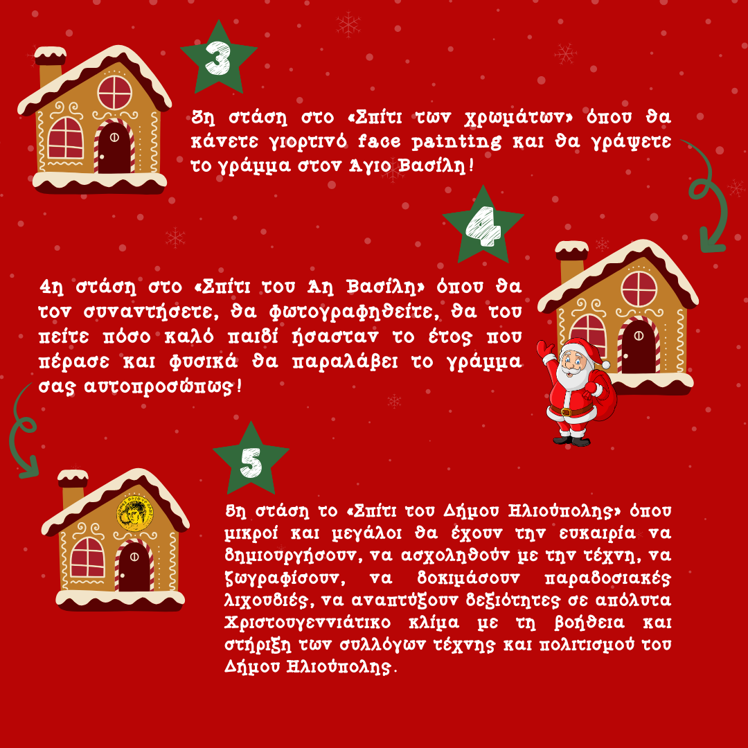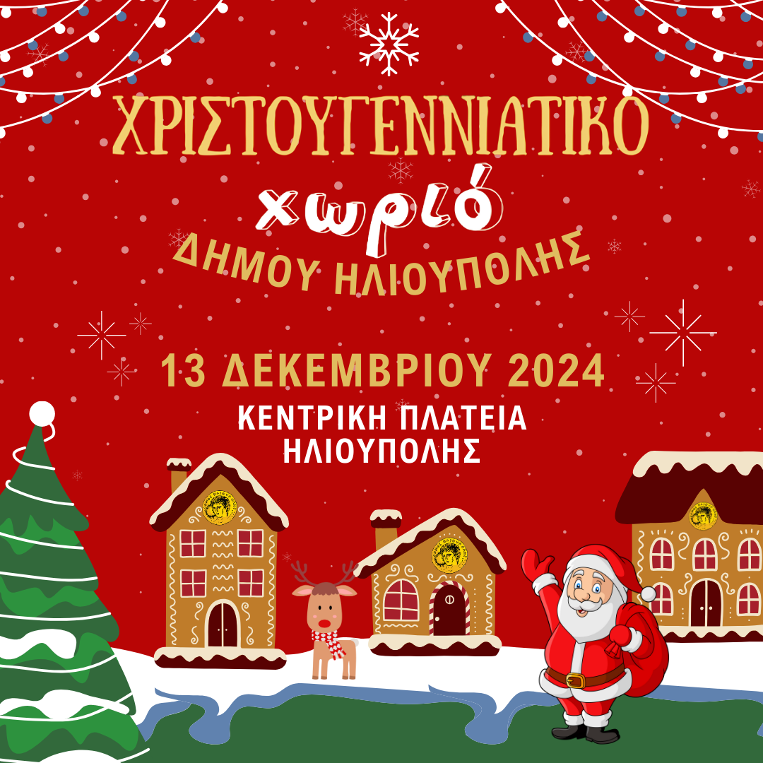 Το σπιτάκι του Δήμου Ηλιούπολης στο Χριστουγεννιάτικο Χωριό περιμένει όλους τους Δημότες με δράσεις που θα ενθουσιάσουν μικρούς & μεγάλους!Τετάρτη 25 Δεκεμβρίου 2024, Ωράριο: 18.00 – 20.00