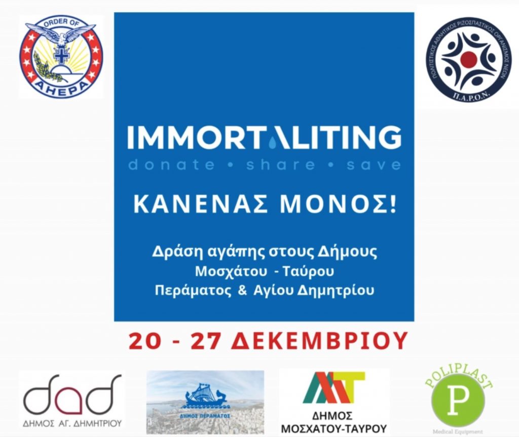 Μια βαθιά συγκινητική πρωτοβουλία, γεμάτη ανθρωπιά και αλληλεγγύη, οργανώνεται από τους φορείς AHEPA Παλαιού Φαλήρου, AHEPA Πειραιά, Οργανισμός Π.Α.Ρ.Ο.Ν και την εταιρεία POLIPLAST, σε συνεργασία με την “Immortaliting”.