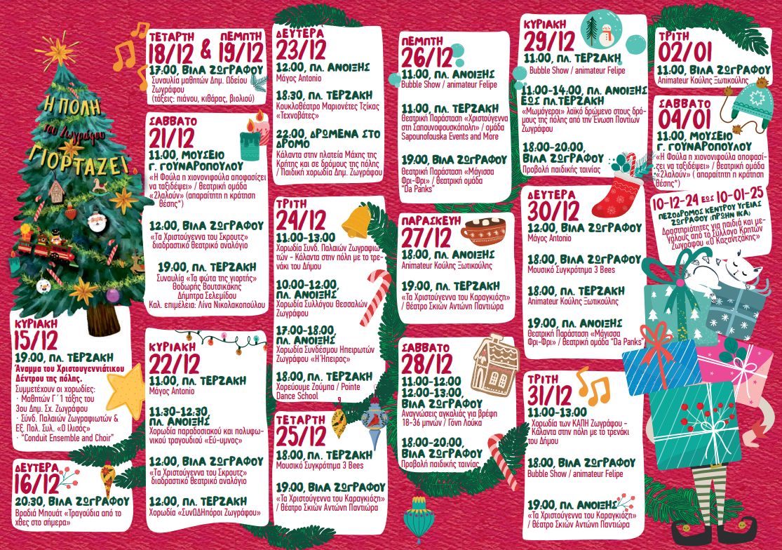 Την Παρασκευή 27 και το Σάββατο 28 Δεκεμβρίου, ο Δήμος Ζωγράφου συνεχίζει με ένα πλούσιο χριστουγεννιάτικο πρόγραμμα, που περιμένει τα παιδιά κάθε ηλικίας της πόλης.