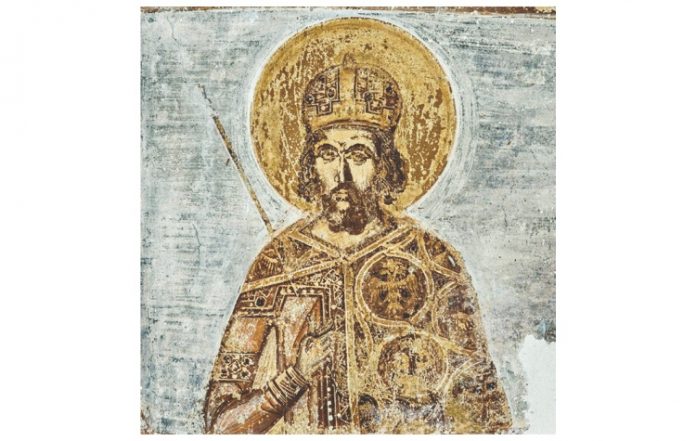 Ο αυτοκράτορας που απεικονίζεται είναι ιστορικό πρόσωπο και ταυτίζεται με τον Κωνσταντίνο ΙΑ’ Παλαιολόγο, αδελφό των χορηγών της ανακαίνισης της Μονής, των δεσποτών Δημήτριου και Θωμά. Είναι η τελευταία χρονολογικά σωζόμενη προσωπογραφία αυτοκράτορα στη βυζαντινή μνημειακή ζωγραφική και το μοναδικό πορτρέτο του Κωνσταντίνου Παλαιολόγου, σύγχρονο με τη σύντομη βασιλεία του (6 Ιανουαρίου 1449 – 29 Μαΐου 1453).