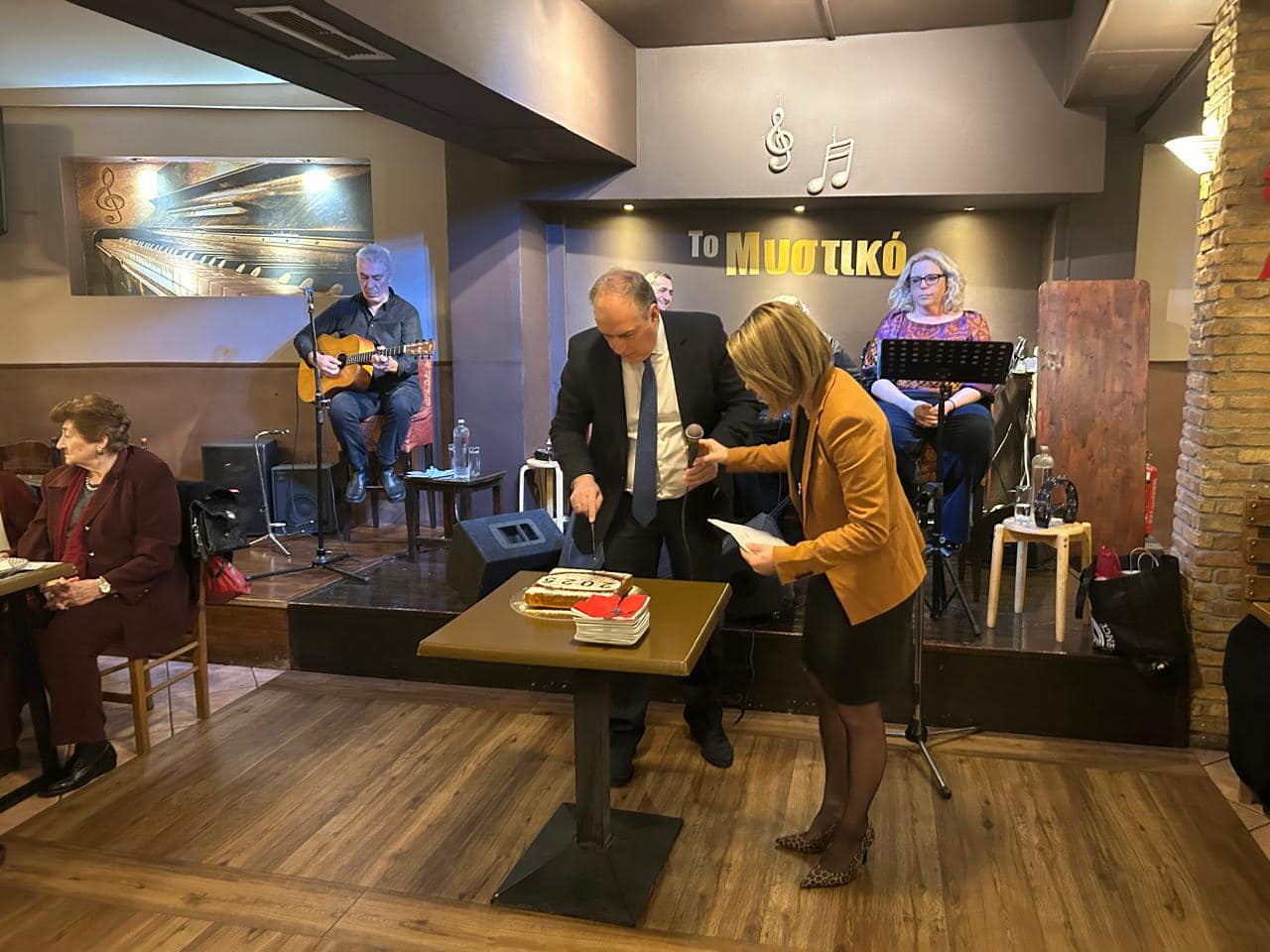Η εκδήλωση περιλάμβανε ζεστές ευχές για τη νέα χρονιά, όμορφα δώρα, ζωντανή μουσική και χορούς, ενώ μοιράστηκαν γούρια σε όλους για τη νέα χρονιά.