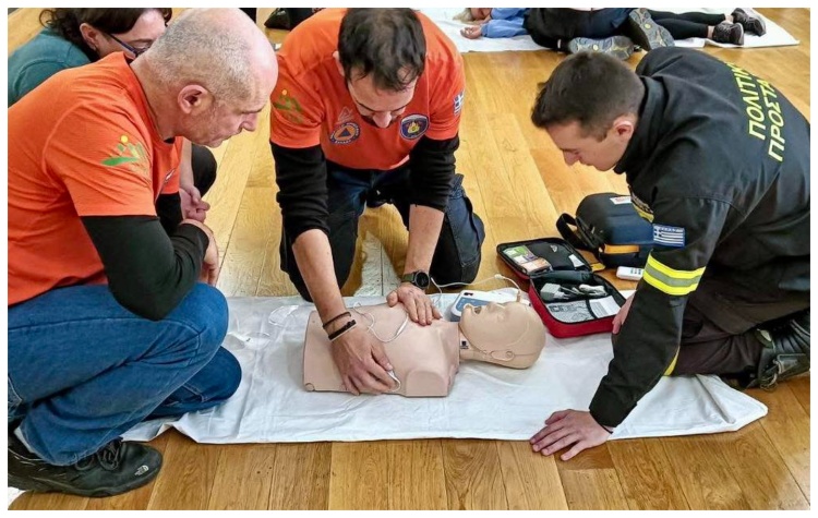 Στην δράση συνέβαλε σημαντικά η συμμετοχή της εθελοντικής ομάδας ΕΠΟΜΕΑ Αιγιαλείας με την ευγενική παραχώρηση ενός εκπαιδευτικού απινιδωτή που χρησιμοποιήθηκε κατά τη διάρκεια της εκπαίδευσης.