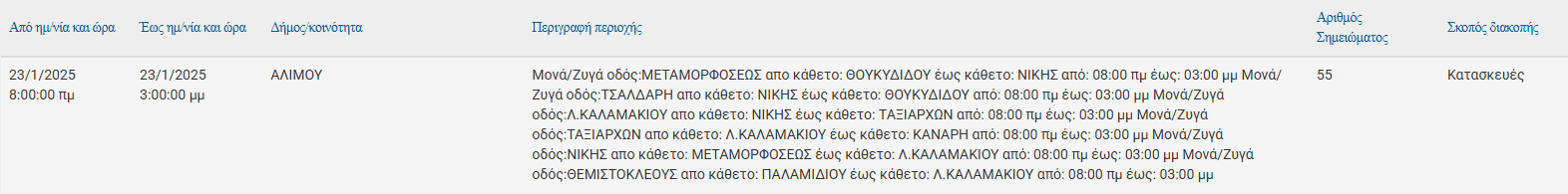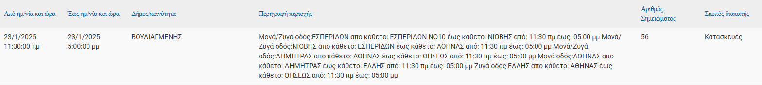 Σύμφωνα με τη σημερινή ενημέρωση του ΔΕΔΔΗΕ, κάποιες από τις περιοχές που θα επηρεαστούν από τις διακοπές ρεύματος είναι της Βουλιαγμένης, του Μοσχάτου, του Αλίμου.