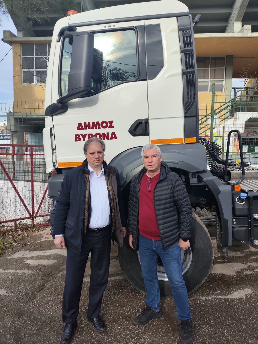 O Δήμαρχος Βύρωνα Αλέξης Σωτηρόπουλος αφού ενημερώθηκε από τον Αντιδήμαρχο Καθαριότητας και Πρασίνου Γιώργο Γκαρμπουνώφ για τις δυνατότητες του οχήματος, τόνισε ότι με τον εκσυγχρονισμό του στόλου των οχημάτων της καθαριότητας, στοχεύουμε στη βελτίωση της ποιότητας ζωής, της καθημερινότητας των πολιτών και την προστασία του περιβάλλοντος.