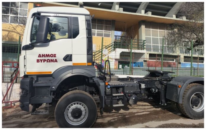 Ο Δήμος Βύρωνα ενισχύει τον στόλο του μ’ ένα νέο φορτηγό τύπου τράκτορα, ενισχύοντας τις υποδομές καθαριότητας. Η αγορά του έγινε με χρηματοδότηση από το πρόγραμμα «Αντώνης Τρίτσης».