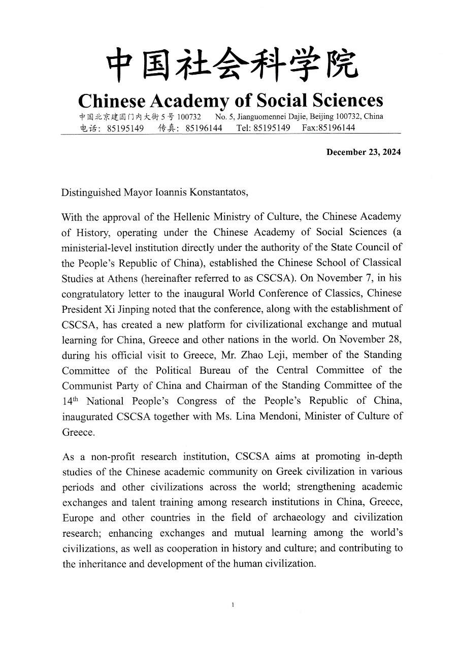 Ο Δήμαρχος αποδέχτηκε με χαρά την πρόσκληση της Κινεζικής Ακαδημίας να επισκεφτεί την έδρα τους στο Πεκίνο, ενισχύοντας τη φιλία και τη συνεργασία μεταξύ των δύο λαών.