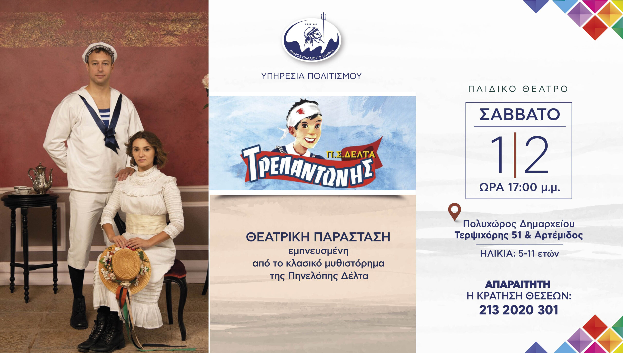 Ο Δήμαρχος Παλαιού Φαλήρου Γιάννης Φωστηρόπουλος και ο Αντιδήμαρχος Διοικητικών Υπηρεσιών και Υπηρεσιών Πολιτισμού Γιώργος Πράπας, προσκαλούν μικρούς και μεγάλους κατοίκους της πόλης στο πλέον βιωματικό μυθιστόρημα της Πηνελόπης Δέλτα, τον «Τρελαντώνη».
