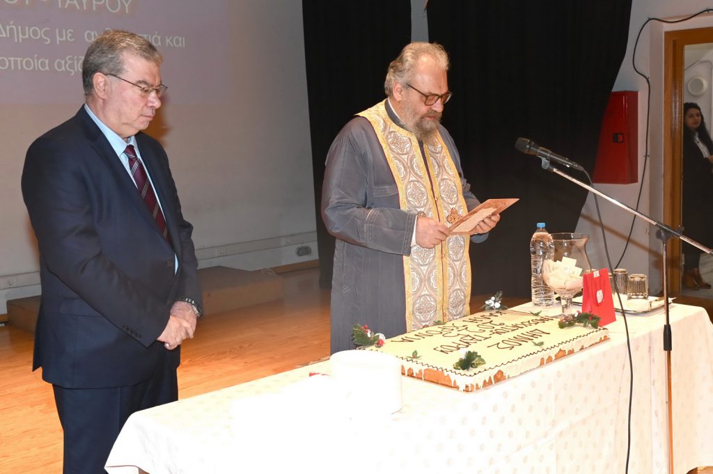 Ακολούθησε η ομιλία του Δημάρχου, Ανδρέα Ευθυμίου, ο οποίος αναφέρθηκε στα σημαντικά έργα που βελτιώνουν την ποιότητα ζωής, όπως αναπλάσεις και νέες υποδομές μέσω προγραμμάτων χρηματοδότησης. Τόνισε την επιτυχία του Δήμου που κατατάχθηκε 4ος στον Δείκτη Αποτελεσματικότητας Δήμων, ενώ μίλησε για τις αντιφάσεις της σύγχρονης εποχής, όπου η τεχνολογική πρόοδος δεν συνοδεύεται από αντίστοιχη κοινωνική δικαιοσύνη. Αναφέρθηκε στις αυξανόμενες ανισότητες, στη συντηρητική πολιτική στροφή και στην απαξίωση της πολιτικής. Εστίασε στα προβλήματα της Τοπικής Αυτοδιοίκησης, όπως στον υπερβολικό συγκεντρωτισμό του κράτους και στην υποχρηματοδότηση των Δήμων, ενώ υπογράμμισε την ανάγκη για αποκέντρωση και ενίσχυση του ρόλου της Αυτοδιοίκησης. Κλείνοντας το λόγο του ο Δήμαρχος έδωσε έμφαση στη σημασία της συλλογικής προσπάθειας, ευχαριστώντας το Δημοτικό Συμβούλιο, τους συνεργάτες και τους πολίτες για τη συμβολή τους. Τόνισε ότι η πρόοδος επιτυγχάνεται μέσα από τη συνεργασία και τη δέσμευση για ένα καλύτερο μέλλον.