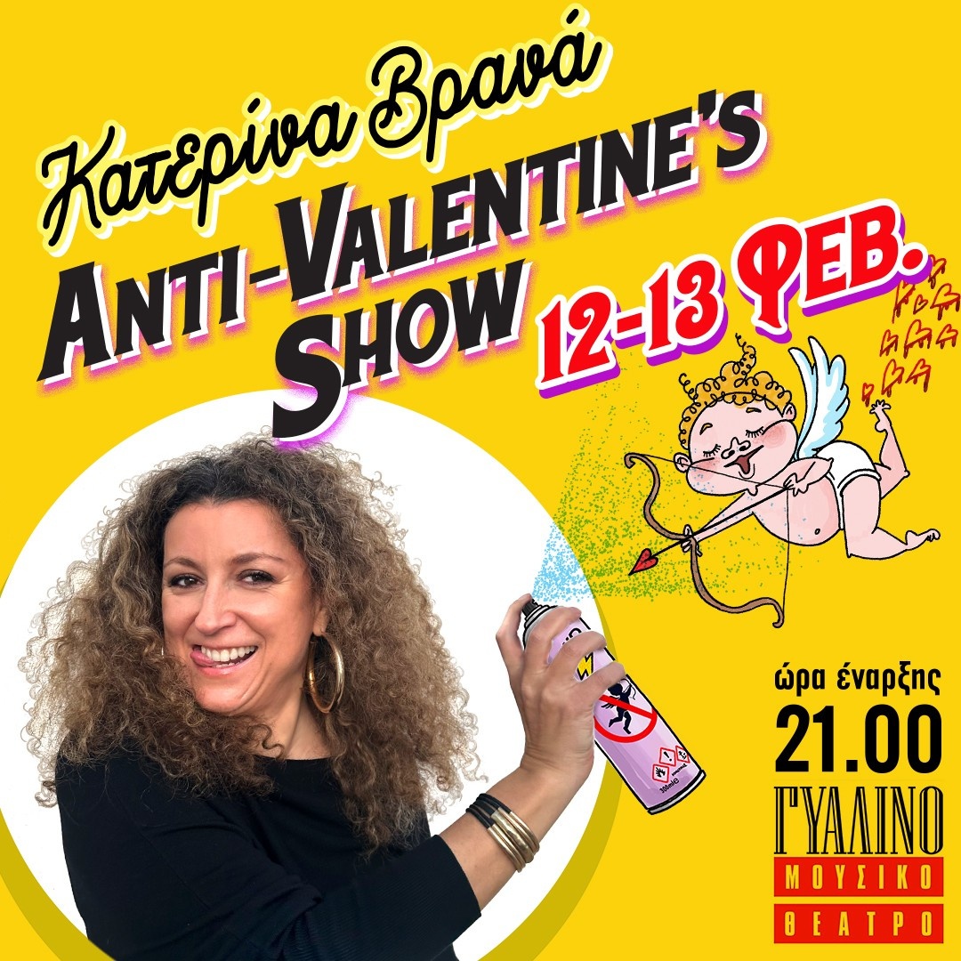 Αν είστε σε σχέση ή και όχι. Αν είστε φρεσκοχωρισμένοι-ες-α. Αν αγαπάτε ή αν είστε ελεύθεροι κι ωραίες, το “Anti-Valentine’s Show” της Κατερίνας Βρανά θα σας καλύψει ΟΛΟΥΣ. ΟΛΕΣ. ΟΛΑ.