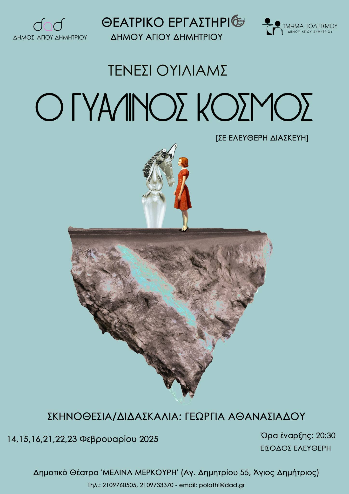 Αυτή τη φορά παρουσιάζει το έργο του Τενεσί Ουίλιαμς, «Ο Γυάλινος Κόσμος», σε ελεύθερη διασκευή και σκηνοθεσία – διδασκαλία της Γεωργίας Αθανασιάδου.