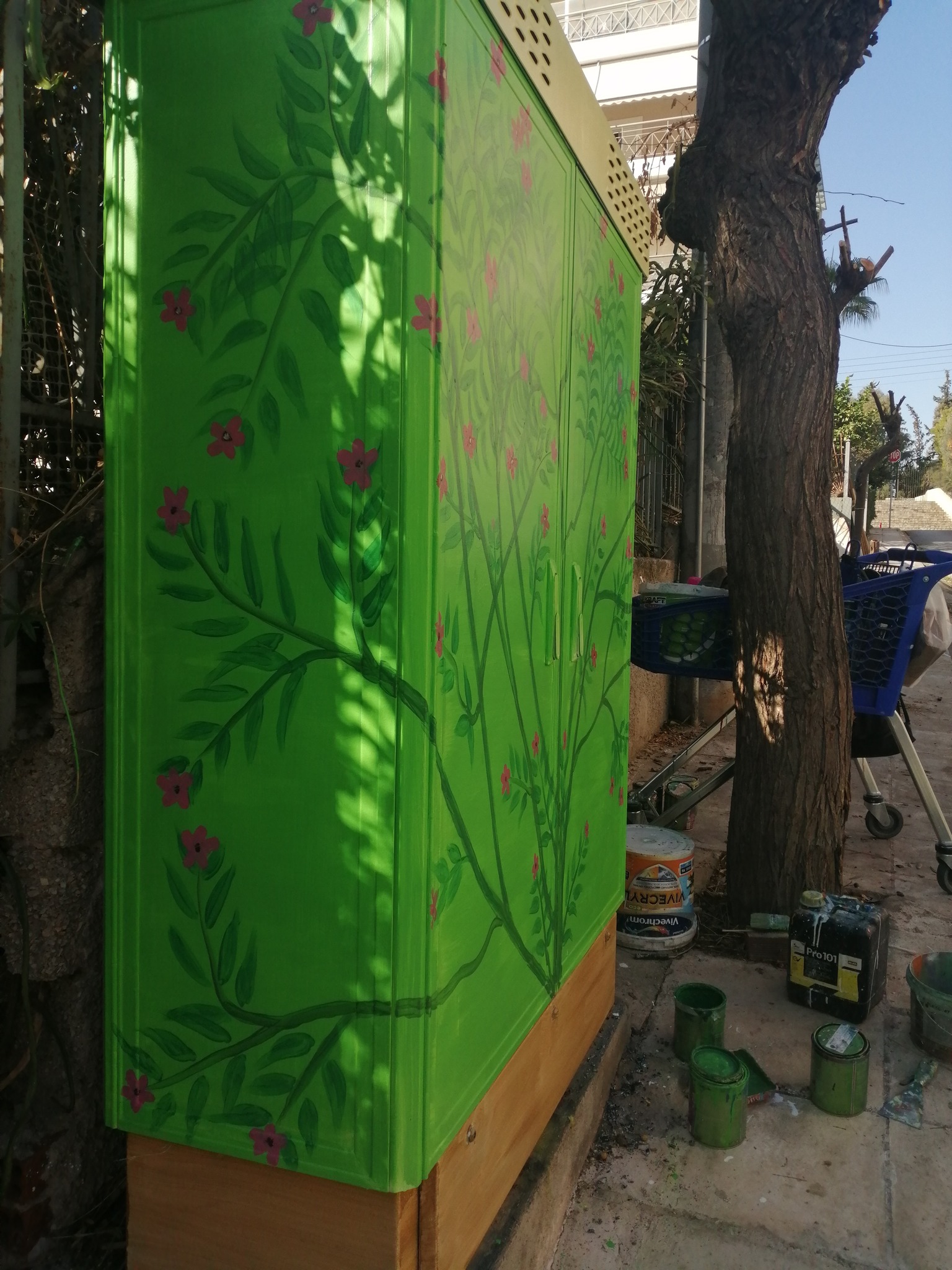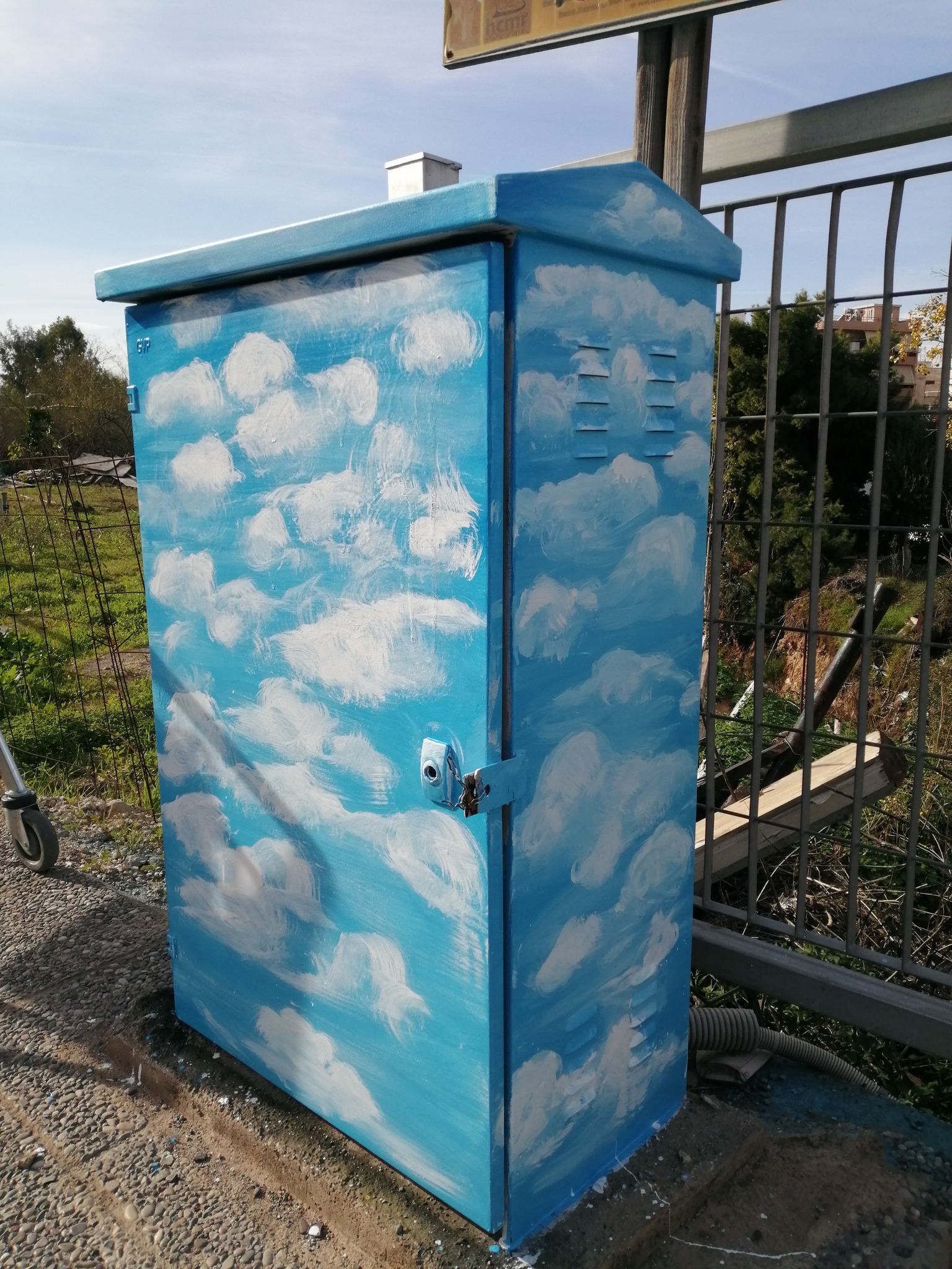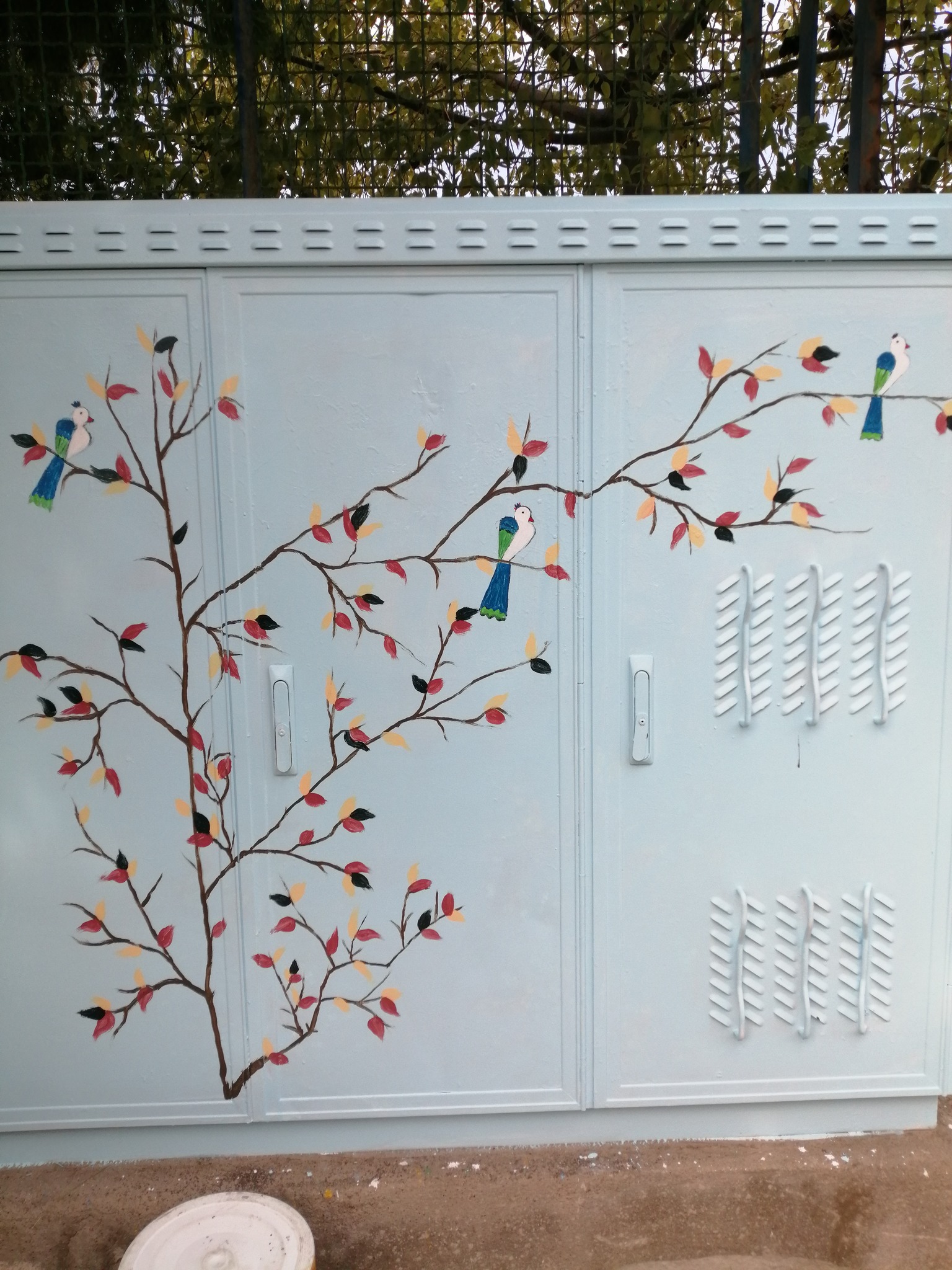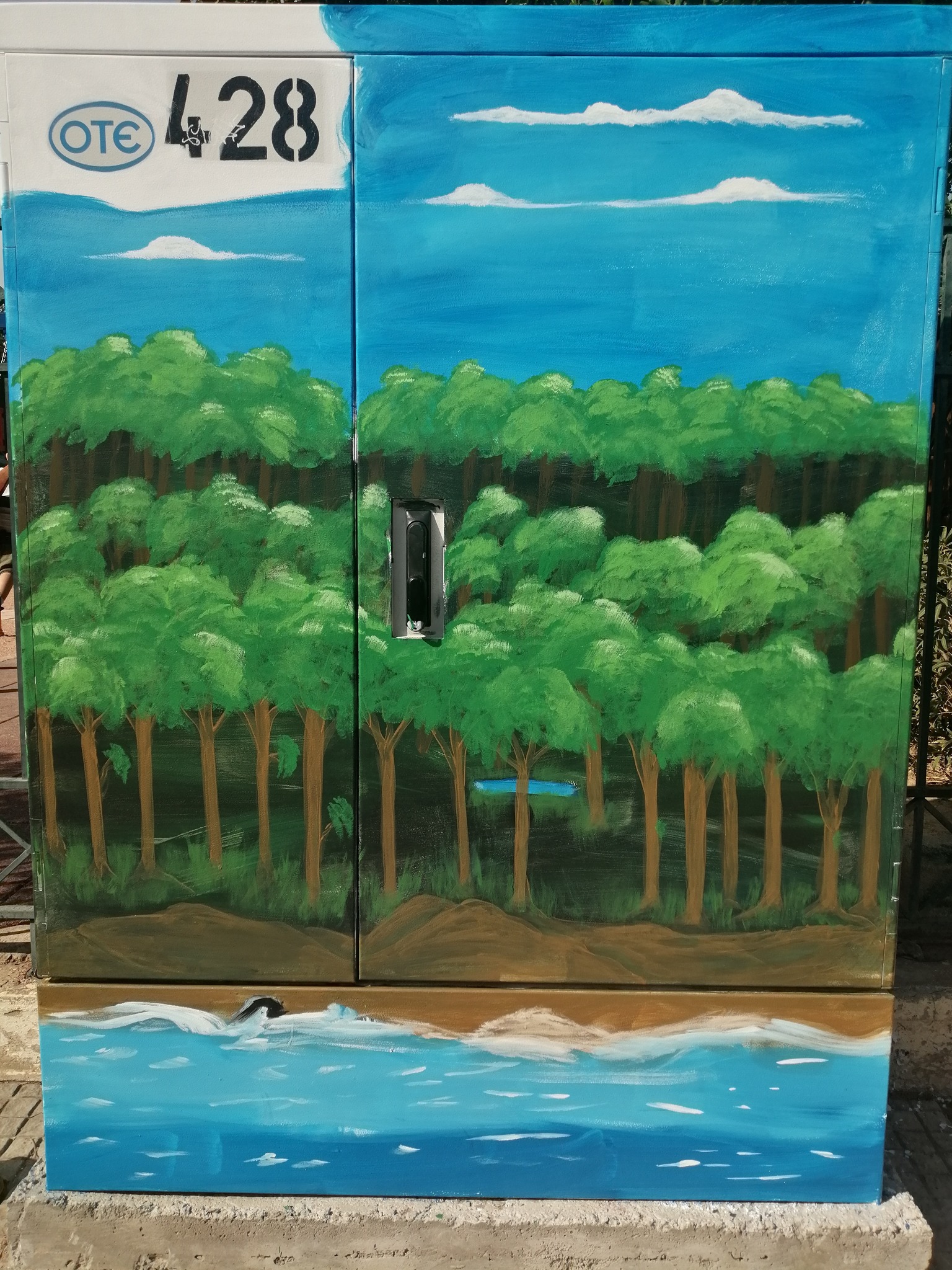 Η Ειρήνη εργάζεται στο Μικρό Συνεργείο της Τεχνική Υπηρεσίας και παράλληλα είναι ερασιτέχνης της ζωγραφικής. Με την παρότρυνση και ενθάρρυνση του δημάρχου Στέλιου Μαμαλάκη, του εντεταλμένου συμβούλου Ευάγγελου Μαλαθούνη και τη στήριξη του υπεύθυνου του Μικρού Συνεργείου Μάκη Κόκκινου, των συναδέλφων και της υπηρεσίας, που καλύπτει το κόστος των εικαστικών παρεμβάσεων, ζωγραφίζει όμορφες εικόνες στα ΚΑΦΑΟ του ΟΤΕ, δίνοντας μια χαρούμενη καλλιτεχνική πινελιά στους δρόμους και τις γειτονιές τις πόλης.