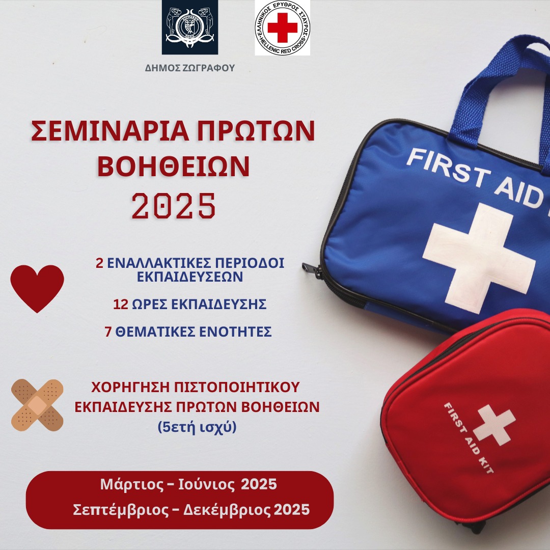 Για το 2025, ο Δήμος Ζωγράφου «ανοίγει» τα σεμινάρια αυτά στην Κοινότητα και σε όλους τους πολίτες οι οποίοι επιθυμούν να εκπαιδευτούν και να πιστοποιηθούν στις Πρώτες Βοήθειες, και μάλιστα εντελώς δωρεάν.