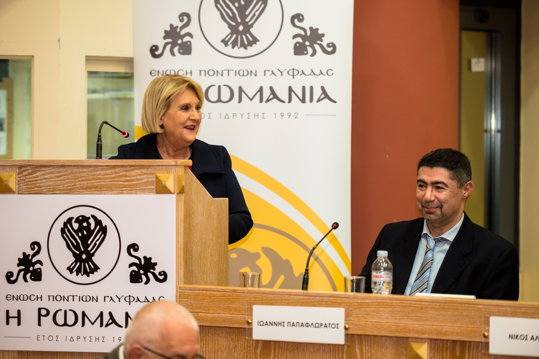 Η Πρόεδρος του Δημοτικού Συμβουλίου Γλυφάδας και Πρόεδρος του Πολιτιστικού συλλόγου Ελλήνων Διαδρομές, κα Δαφνούλα Χαρίση – Μπίλια.
